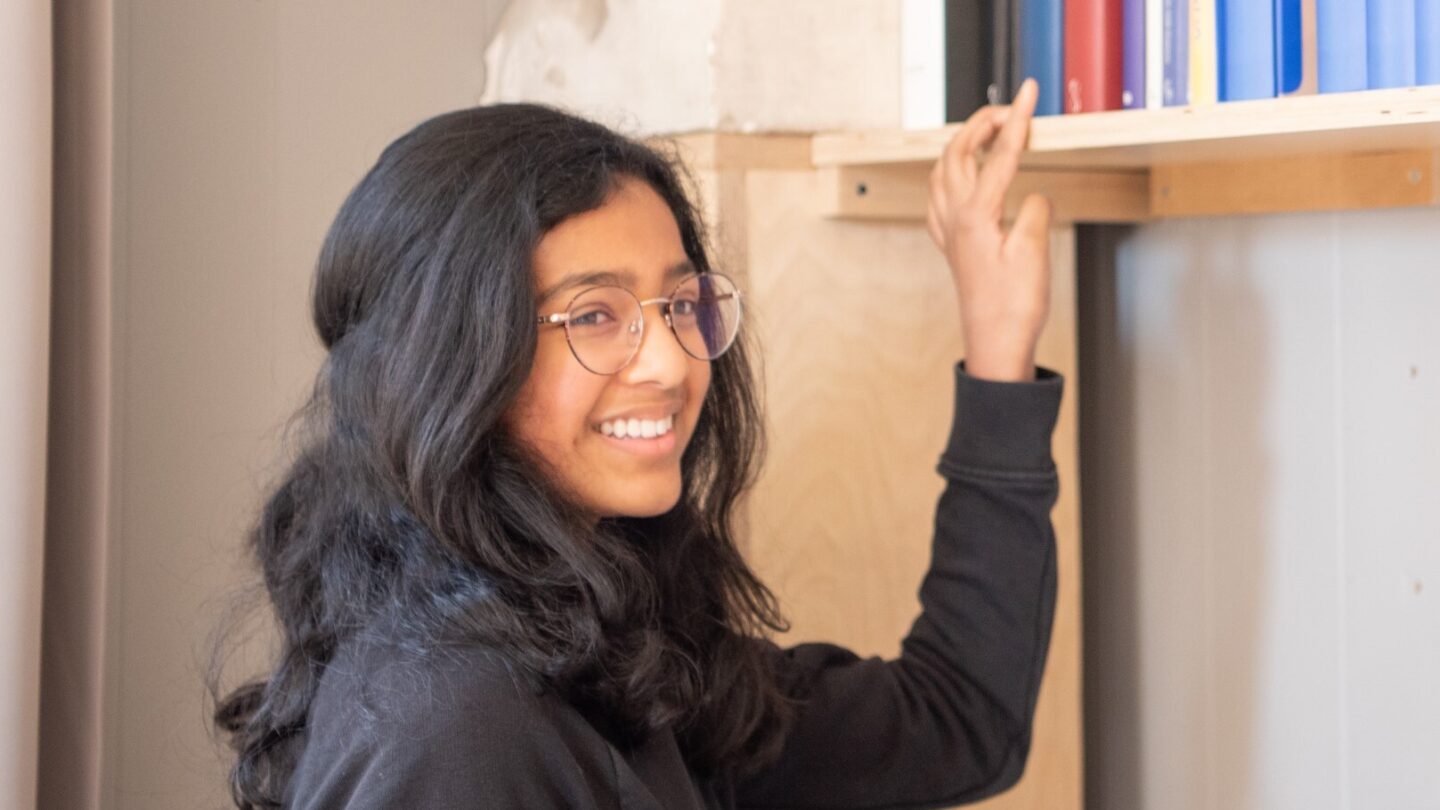 Elina is trots dat ze op het Lyceum zit: haar meter en een aantal neven en nichten gingen haar voor en vinden het nog steeds een goede, toffe school. Elina houdt van de extra uitdaging die de vakken Latijn en wiskunde haar bieden, en het helpt ook dat de leerkrachten superlief en behulpzaam zijn – ze zorgen dat je de leerstof echt begrijpt. De leukste plaats op school vindt Elina de benedenzaal, een gezellige ruimte met knusse zeteltjes, waar je even kunt ontspannen tijdens de pauzes.