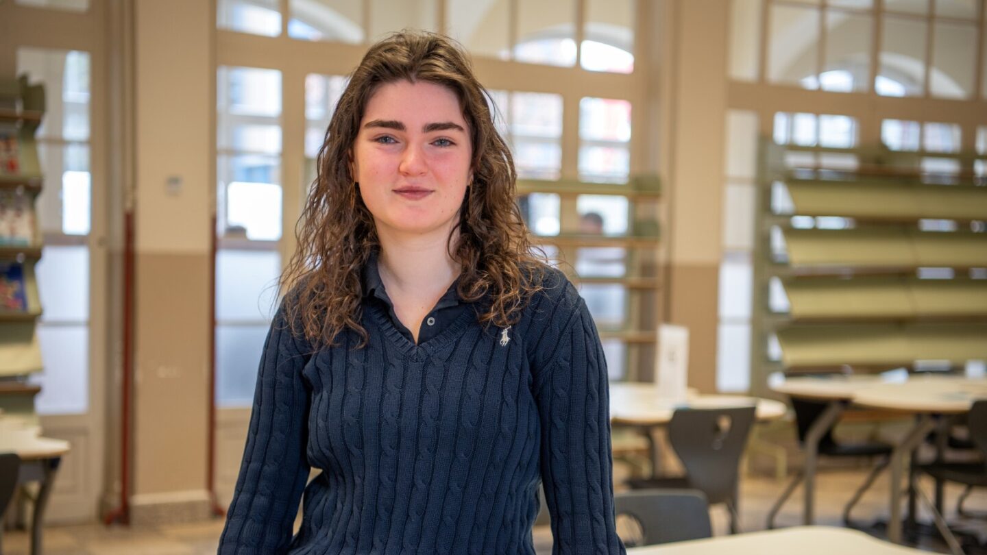 Stiene kwam in het vijfde leerjaar naar de opendeurdag van het Lyceum en ontdekte toen dat de school, net als de richting Latijn, bij haar zou passen: een sterke theoretische basis, met voldoende uitdaging. Ook Lab 21.0, de ‘future classroom’ van de school, sprak haar aan. ’s Middags vind je haar dan weer vaak in het open leercentrum: de ideale plaats om de gemiste vakken bij te werken.